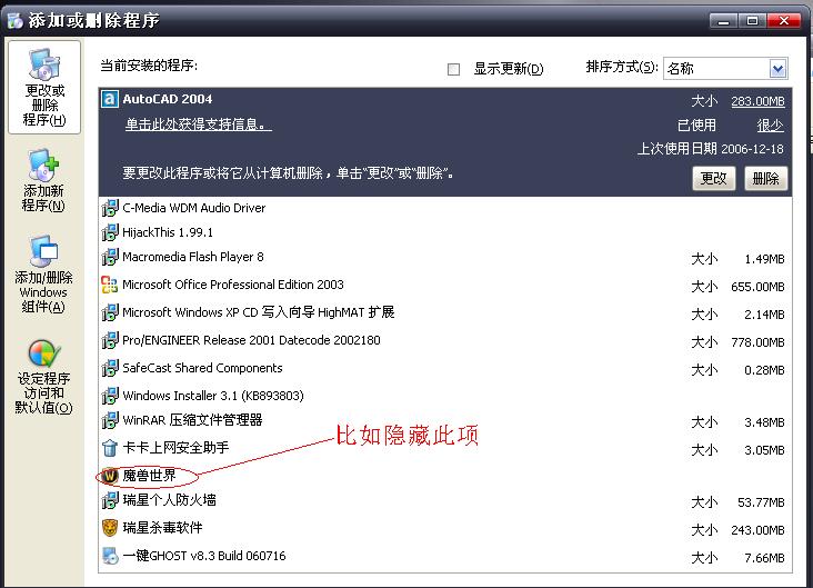 关于添加删除程序里的项目显示