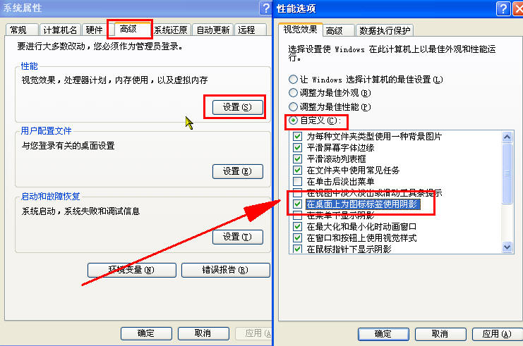 试试鼠标指到“我的电脑”击右键→“属性”→“高级”→参见下图红框中去掉红色箭头所指到的钩所示: