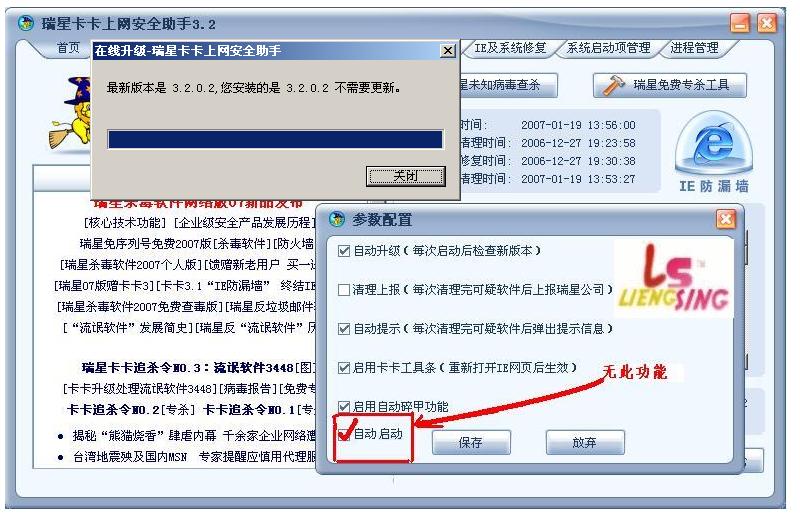 现在我把启动项中的删除了,有时想系统启动,就把它加上,手动加麻烦,望加入后,有一点人性化的功能