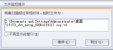 应该是rising的某个监控在扫描文件时,超过了正常设定的时间,只要在监控设置中,将超时提示的复选框的勾去掉就行了。