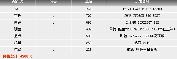 求助装电脑主机配置单