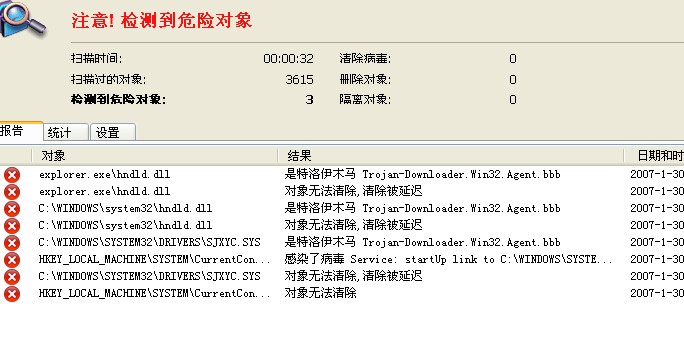 5.0版本的都是这个样子扫描到任何病毒都说无法删除 嫂面完毕点处理 都删除了