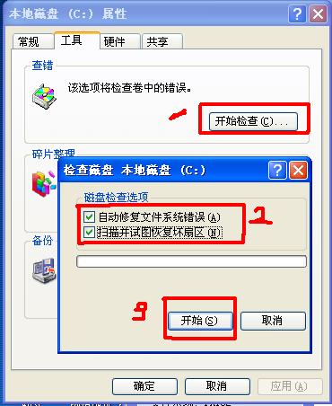 点击开始检查,就出现对话框,说不能执行,只有在重启后才行!