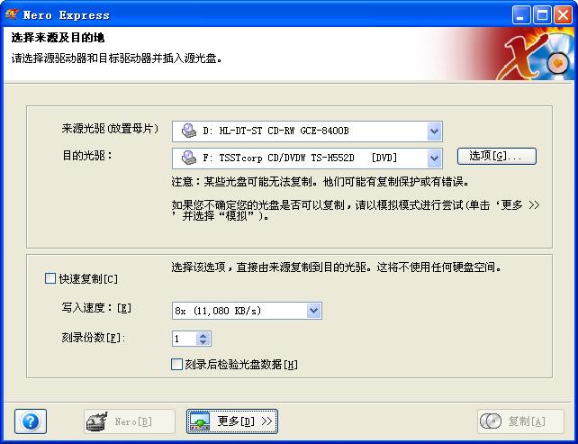 当你正确选择了光驱插入的光盘类型时 NERO软件会根据你选中的类型进行刻录 其他的偶不知道了