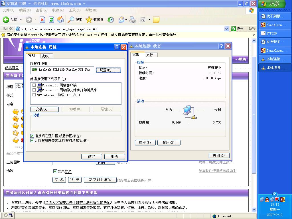 今天”本地连接“还自动连接上了;多数时候”本地连接“根本就没有连接,上网效果一样。所以真弄不懂,什么样的上网连接是正确的?