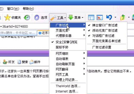 如图红框所示,这家伙一出来整个网页要闪烁5秒钟左右,然后象烟花一样自动消失。想让它彻底出不来,但用卡卡的黑名单也拿它没办法。望高手出招!