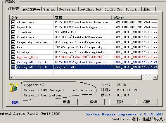 O4 - 启动项HKLM\\Run: [kis] "D:\Program Files\Kaspersky Lab\Kaspersky Internet Security 6.0\avp.exe"