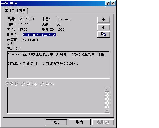 在 Windows 2000 中,如果应用程序事件日志显示事件 ID 1000,其中消息文本指示配置文件未卸载且错误为“拒绝访问”,那么可从此服务中获得帮助。在 Windows XP 和 Windows Server 2003 中,事件 ID 1517 和 1524 表示相同的配置文件卸载问题。