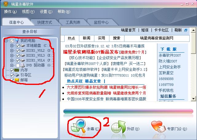 我的电脑几个月前就中了熊猫烧香病毒。有很多朋友说瑞星可以杀。但是据我朋友所知他说我的电脑的毒已经变种了。我就去买了瑞星07年版本的。可我不会用。按那里才能杀光病毒。请朋友们帮帮忙可以吗????????