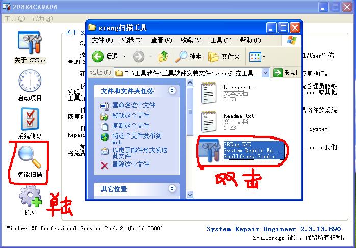 下载sreng扫描工具后,双击打开,单击智能扫描,然后在合适位置保存扫描日志。