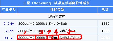 1处指的是显示器的亮度,中文名称叫做每平方米烛光(或称“流明”),越大越好,在强光下也可以很清晰。