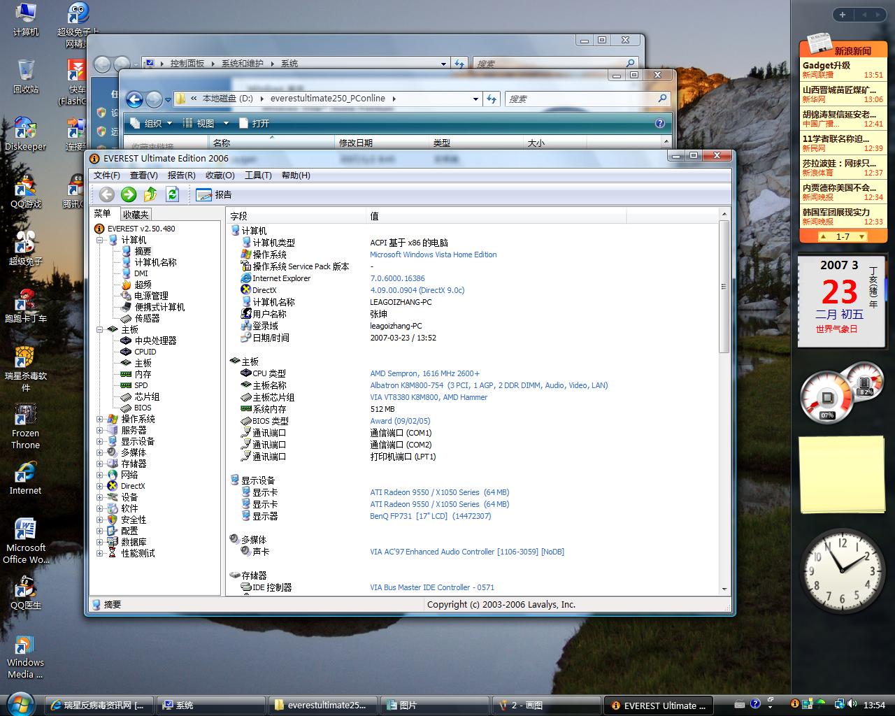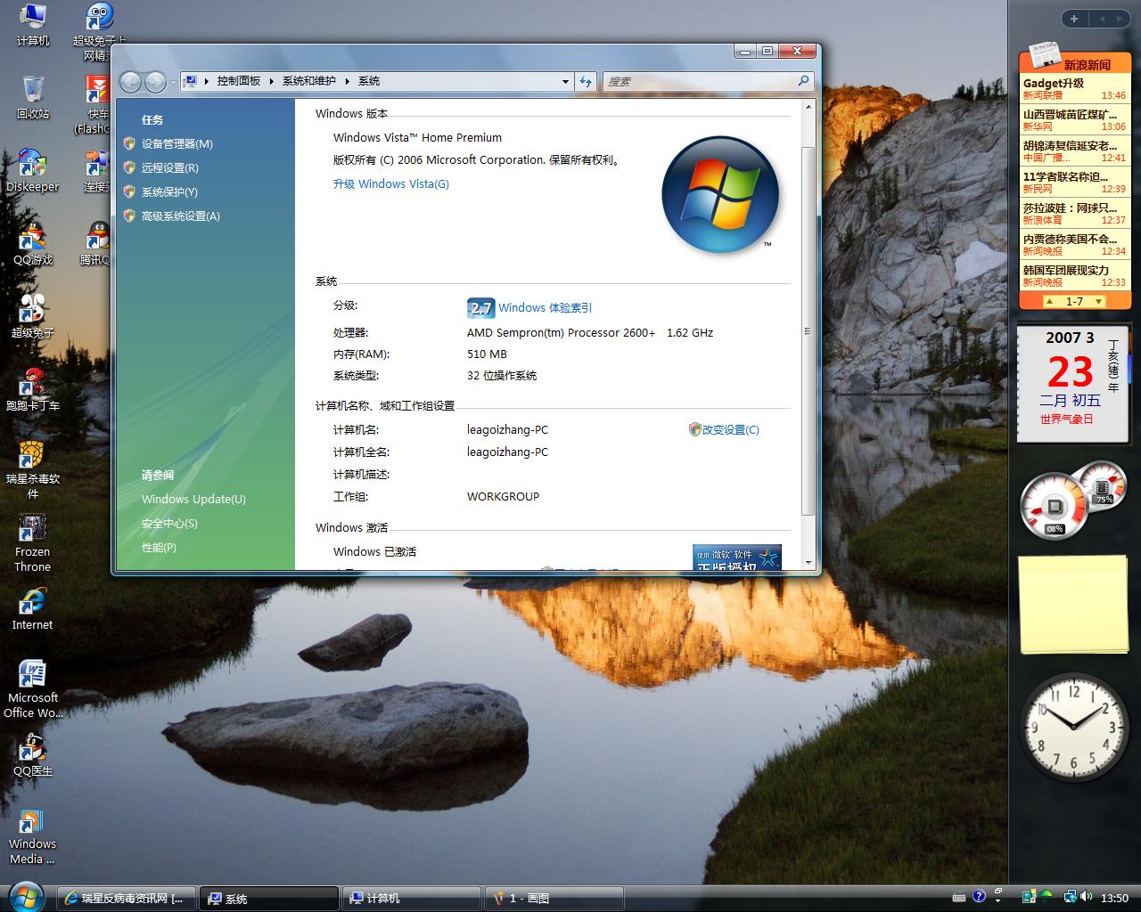 安装用了40分钟左右,感觉在512MB内存下运行Vista和在256MB内存下运行XP差不多,我还能在上面玩魔兽冰封王座,一点不卡.
