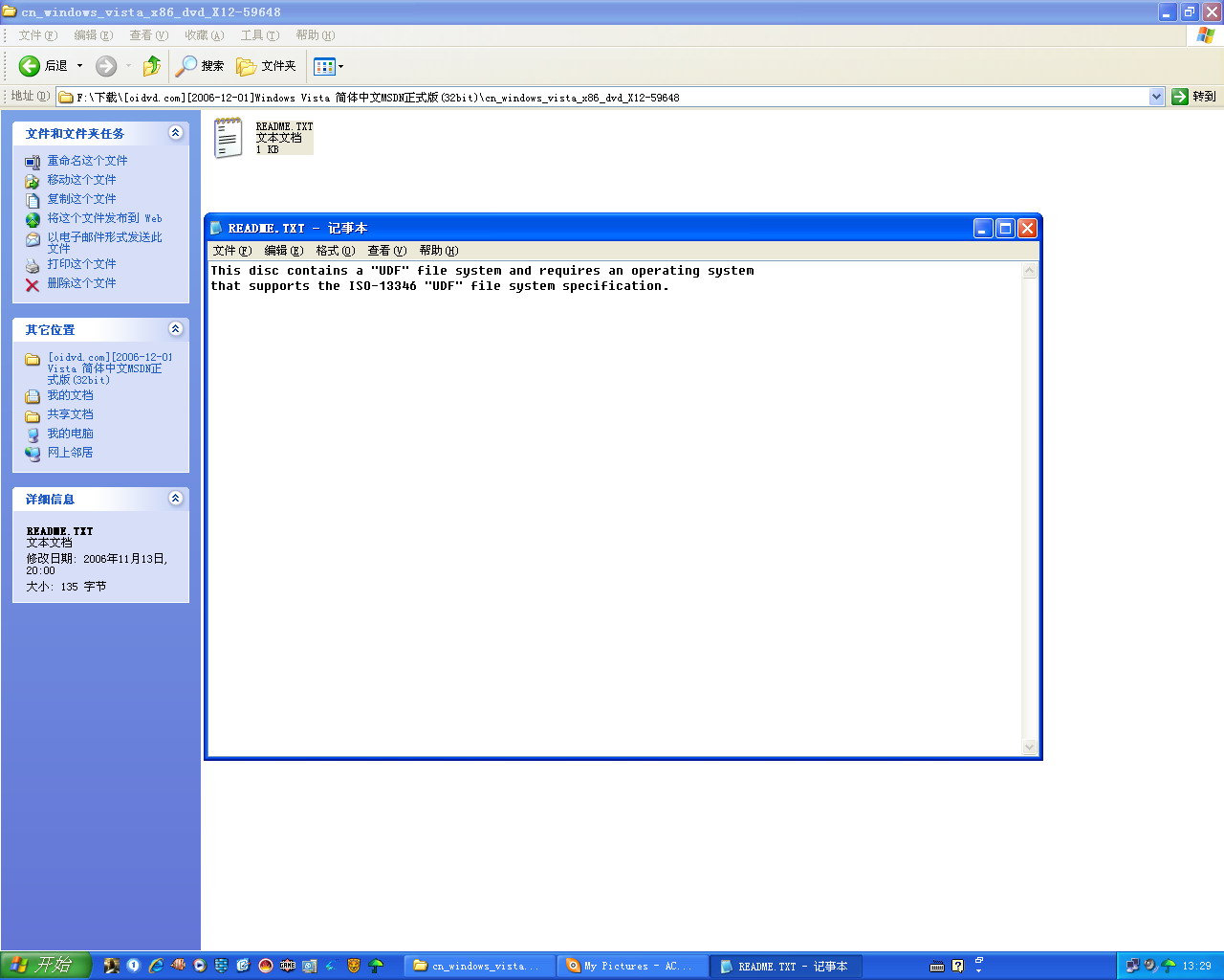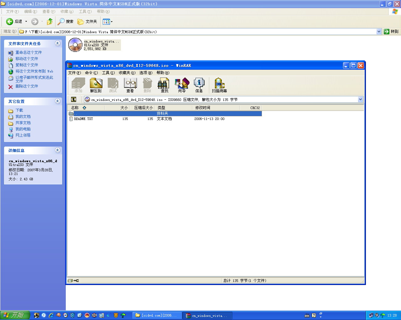 花了将近4天的工夫,好不容易把这个2G多的家伙下载完。可为什么我用winrar打开一看,怎么里面就一个文本文件呢?这个文件里面说的是什么,我也看不懂(英文不及格呀)。谁来帮帮我,这个VISTA是应当这样的吗?