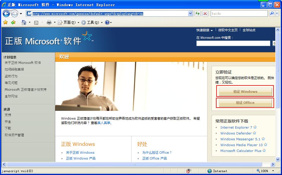如需验证你的WINDOWS和OFFICE请访问:http://www.microsoft.com/genuine/default.aspx?displaylang=zh-cn