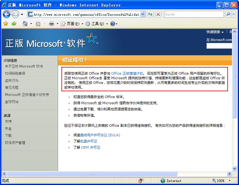 OFFICE验证结果,通过正版验证,我用OFFICE 2007 PRO