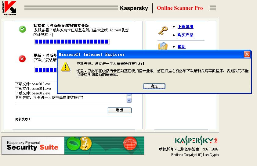 卡巴斯基在线杀毒问题