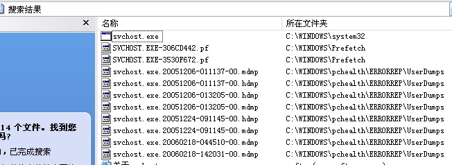 今天,偶然发现电脑中多了个启动项333,一查原来是SVCHOST.EXE,上网搜索说SVCHOST.EXE如果大写就有可能是木马了,可是用AVG又查不出,现把C盘中的所有SVCHOST.EXE查出来,请高手看看,有没可能是病毒?