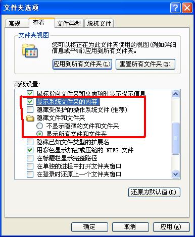 如何把“显示所有文件和文件夹”、“显示系统文件夹”显示出来????