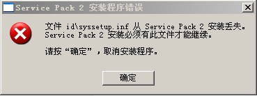 在windows 2003 datacenter 数据中心版安装sp2补丁,提示id/syssetup.inf 文件丢失,点确定退出安装。