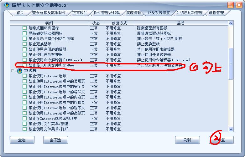 在文件夹选项中设置显示所有文件,但所有的隐藏文件都无法显示