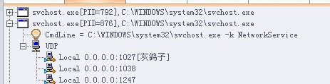 系统状态->svchost.exe ->UDP -> 0.0.0.0:1027〔灰鸽子〕