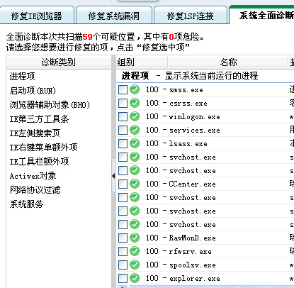 【飞跃时空的贴子】帮我看看,360安全卫士扫描出来的59个可疑位置,哪些需要修复?