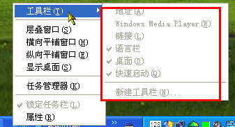 【老龙潭的贴子】我的电脑每次启动后任务栏中工具栏分栏的数量都不一样,有时会出现好几个没用的工具栏,有的可以关闭,有的无法关闭,严重影响打开程序的切换。请问如何才能使任务栏中工具栏的数量固定为常用的3栏(快速启动、打开程序、输入法)? ……………… |