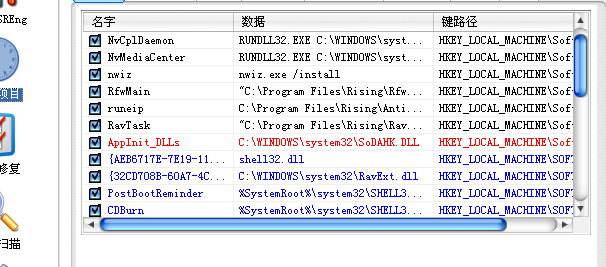 所有的启动项目(包括注册表、启动文件夹、服务等)