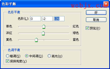 9、单击图层面板下方的创建新的填充和调整图层按钮,在弹出的快捷菜单中执行“色彩平衡”命令,在弹出的色彩平衡对话框中设置参数如图9所示,单击确定按钮,画面效果如图10所示。