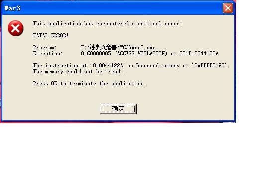 我玩单机版魔兽的时候老被弹出来,系统提示如下图
