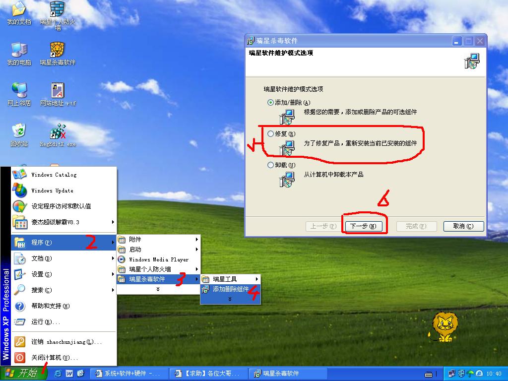 为什么我的杀毒软件不能升级,他叫我使用安装程序修复功能修复后再升级啊!要修复的话又要到什么地方去修复呢!