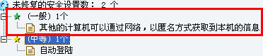 其他的计算机不允许SAM帐户和共享的匿名枚举可以通过网络、以匿名方式获取到本机的信息它就是一个安全设置项的漏洞了,参见下图片。所以正确的应该设置为“1”,下面就不会有这项安全设置项的漏洞了。