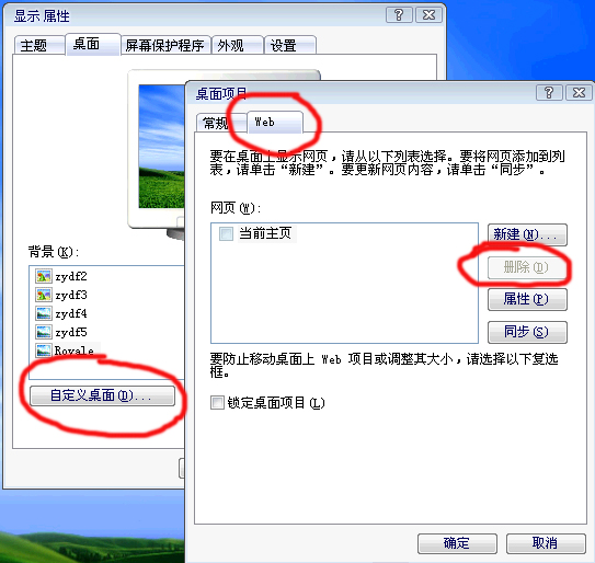 开始--运行--输入GPEDIT.MSC--回车,进入组策略窗口,找到active desktop这个项目,双击,选择“已禁用”,确定