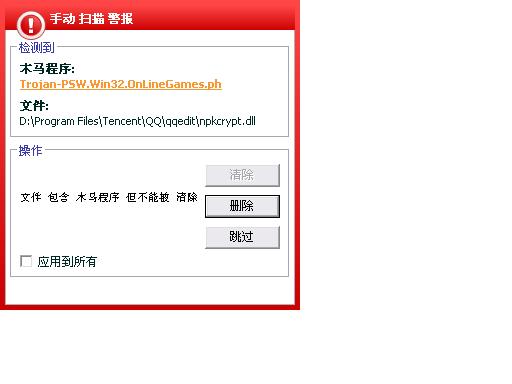 误报总比不报好,提醒一下也无妨。久久难得有一次报警或中毒,冒出一片大红的警示也给人带来一丝喜气。今天我的卡巴报QQ的登陆加密驱动文件是在线游行类的木马。是真是假。偶也懒得在意,跳过一旁,有时间再来仔细端详一番那个文件。只觉的有趣而已。