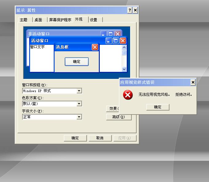 呵呵,好麻烦啊,在“我的电脑”右击——管理——服务和应用程序——服务,找到“Themes”就行了