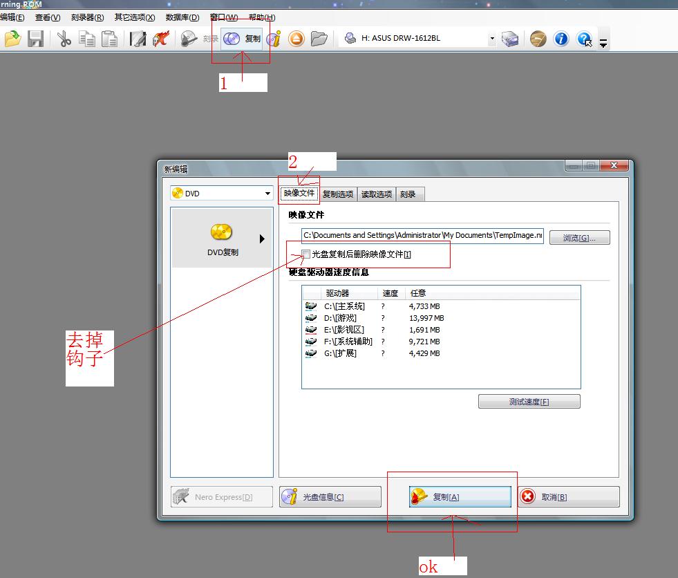 我使用的是Nero 7.0.8.5,复制光盘时生成的映像文件怎样才能保存到硬盘上。因为每次刻录完后那个映像文件就自动删除了。