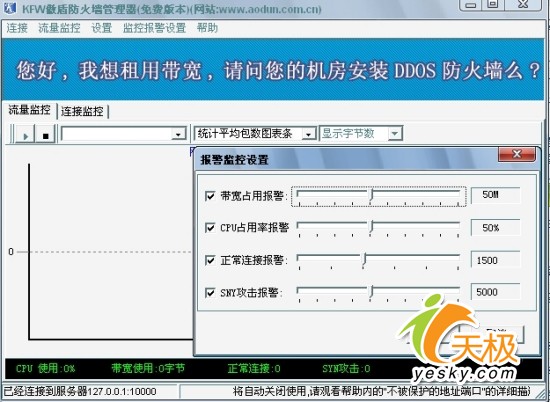 Ddos专防傲盾防火墙傲盾DDOS软件防火墙自从01年发布至今,累计使用客户达12万人次,客户群体遍及网游,BBS,WEB网站。傲盾以专业的服务,过硬的技术,深受广大客户的好评。此免费版本最大并发连接数3000,防护50M每秒DDOS攻击。完全防护各种SYNDDOS攻击,碎片攻击,UDP,ICMP,IGMP等flood攻击,空连接,SF各种漏洞攻击,DB系列漏洞攻击,CC,CC变种,代理攻击,肉鸡攻击,网络僵尸,教主,M2等攻击。