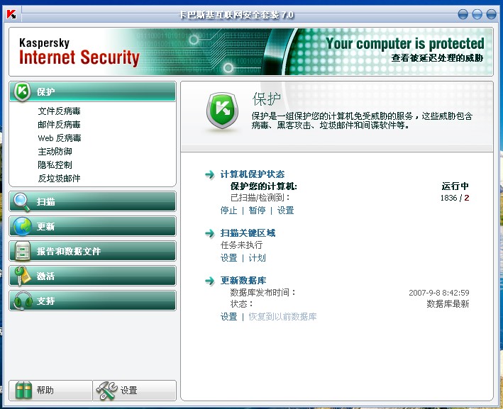 9月卡巴斯基KIS和单机版出来了,比6.0好用的多了,不如大家去试试