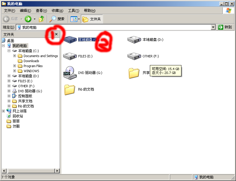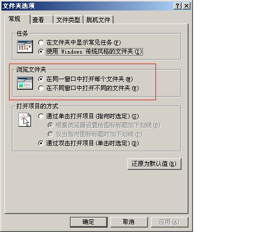 双击我的电脑图标就弹出如图的样子工具栏上的文件夹自动按下,资源管理器自动打开了.关闭图中1,再双击2就又打开一个窗口.如此操作打开的窗口就太多拉.要是不关闭资源管理器打开文件就在一个窗口.这是什么问题,怎么解决..