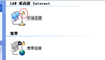 “本地连接”&“宽带连接”的图标右上角出现了一把小锁(如图1)
