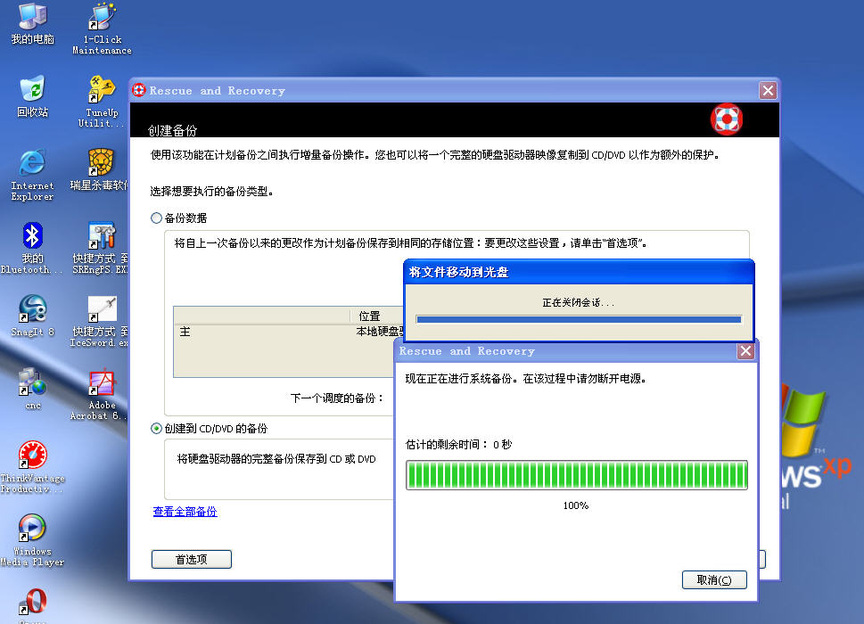 C盘22G的内容,GHOST备份与恢复耗时28分钟,Rescue and Recovery则需要80分钟。