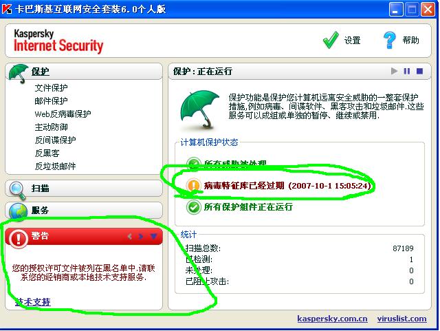 卡巴6.0的病毒库停在10月1号??????