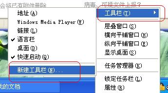 三:在任务栏单击右键选--工具栏--新建工具栏