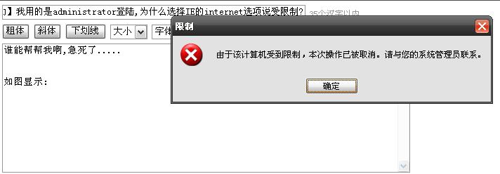 谁能帮帮我啊,急死了.....我用的是administrator登陆,为什么选择IE的internet选项说受限制?