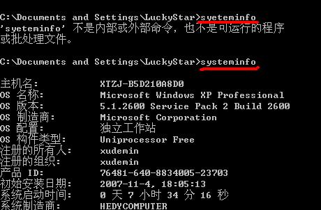 以Windows XP系统来说,按“WIN+R”快捷键,输入“CMD”回车后,再在DOS窗口下输入“systeminfo”命令,就可以查看到您的Windows XP出生日期了(指Windows XP初安装日期)。,如果利用GHOST重装系统后,还是会以以前的时间为准。
