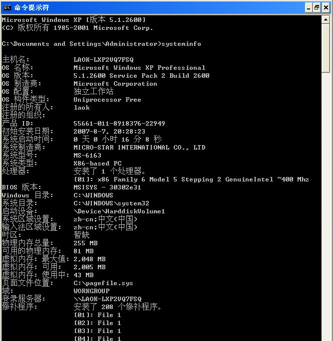 除此之外,还可在此看到系统的所有信息,如主机名、处理器、网卡、以及系统打了多少补丁等等。是不是很有意思呢?