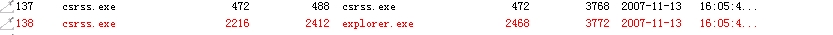 我在“监视进线程创建”处发现有红色标志的,这是否说明该线程是病毒呢?那是个“调用方进程映像名叫csrss.exe,目标进程映像名叫explorer.exe”的,还有此处还有蓝色和绿色标志那又代表的是什么意思呢?