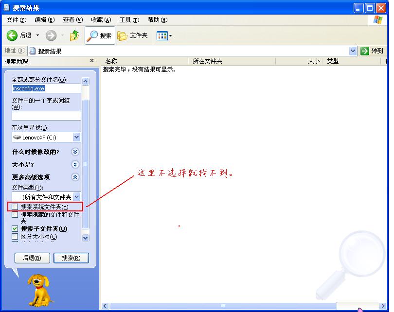 可是搂主的搜索选项里面勾选了“搜索系统文件”啊!!怎么回事呢?