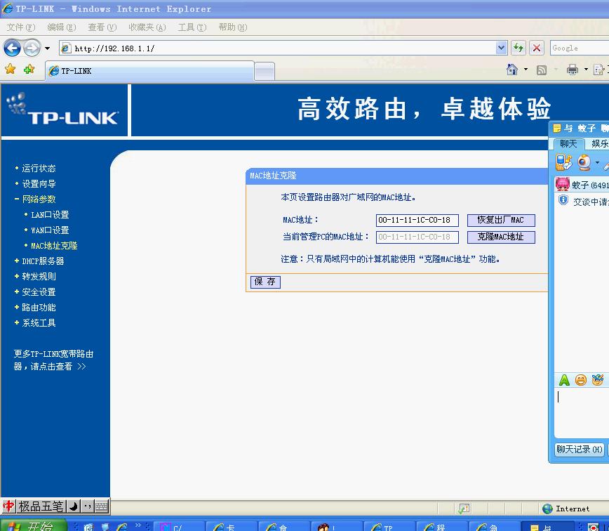 也就是说:使用没有弹出提示的电脑登录路由器,然后在路由器中找到克隆MAC地址这个功能