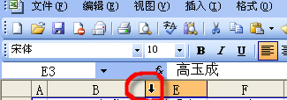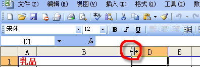 但当我把鼠标移动到这个excell表格隐藏列的旁边时,却始终无法显示顶楼所示的那个符号,而是一直显示下图的符号(红圈所示)。所以也一直拖动不了隐藏的列。